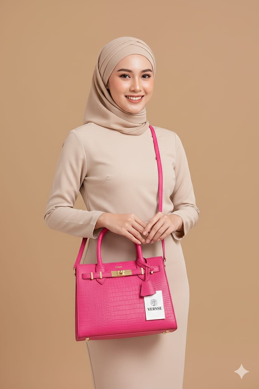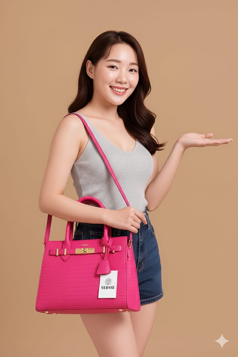 Make heads turn with this eye-catching Original Versse Pink Croc-Embossed Tote Bag — a stunning fusion of playful color and luxurious texture. Perfect for fashion-forward women who love to stand out, this structured tote features a bold hot pink hue and sophisticated crocodile-patterned faux leather, giving it that high-end designer look without the luxury price tag.